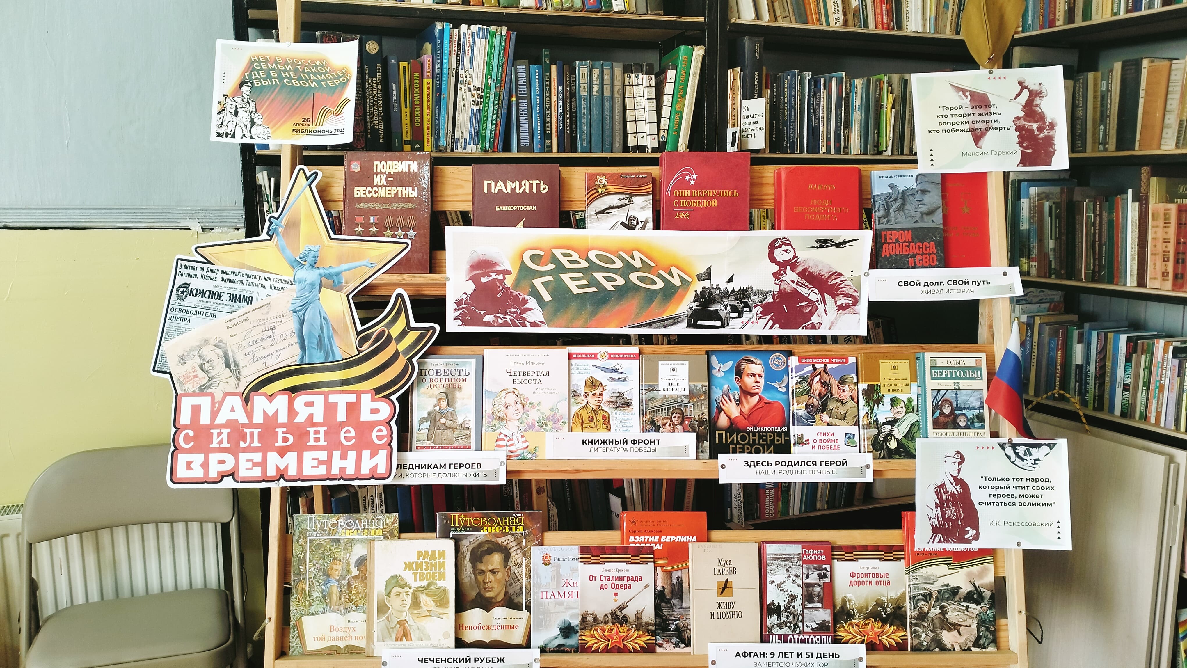 25 апреля 2025 года библиотека села Баженово поддержит Всероссийскую акцию «Библионочь-2025», которая в юбилейный год Победы пройдет под названием «Свои герои» и девизом «Нет в России семьи такой, где б не памятен был свой герой».