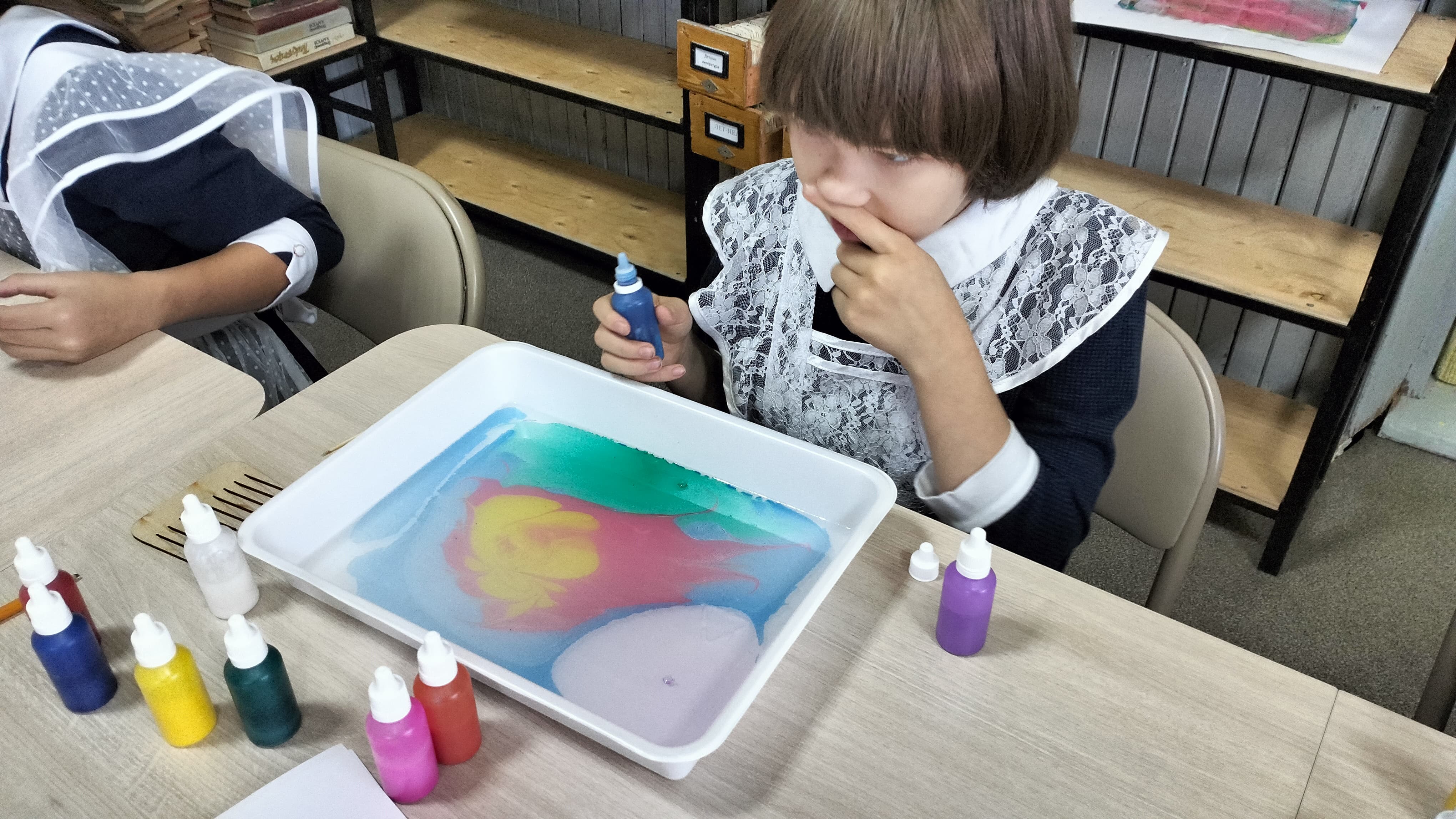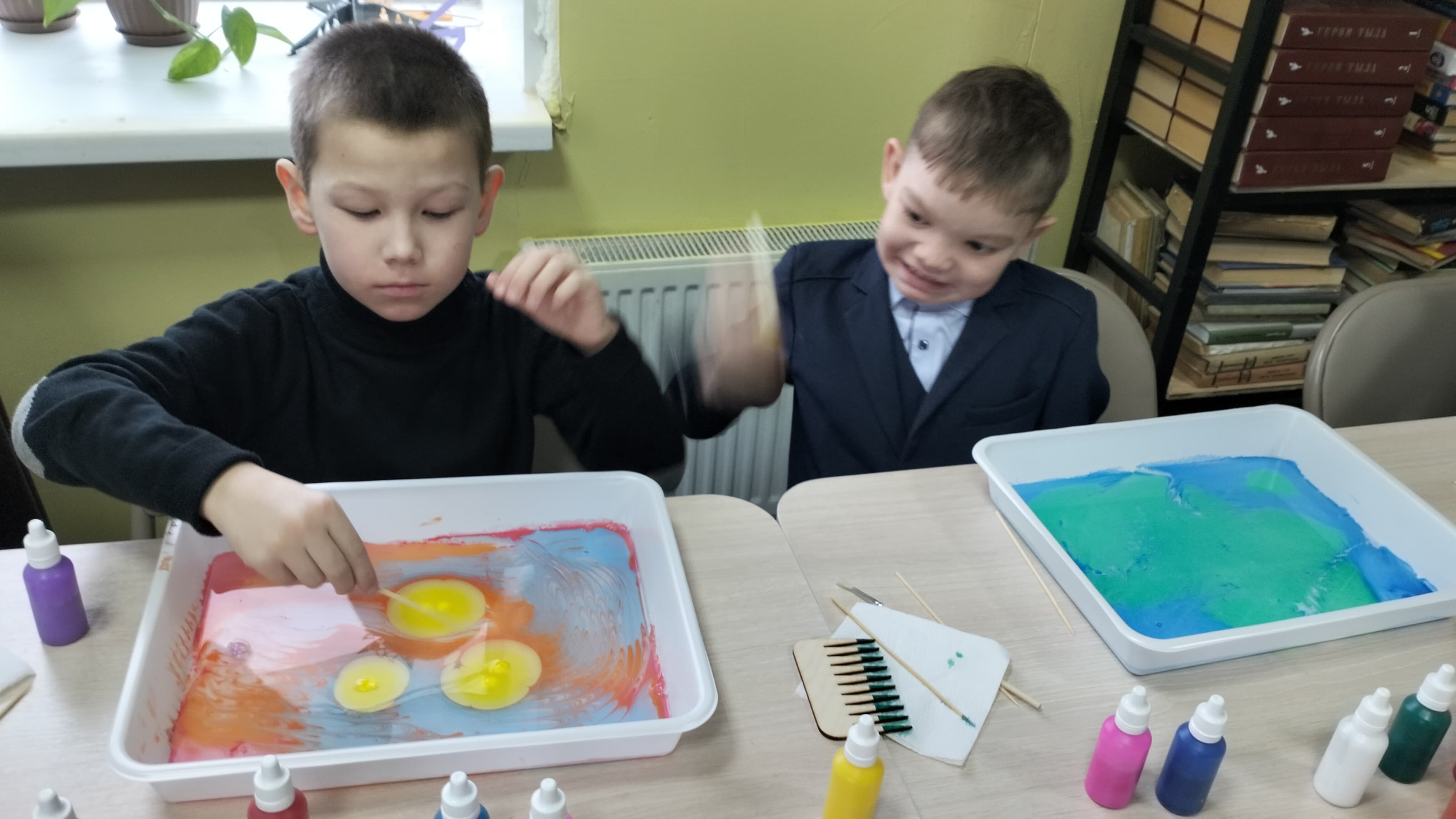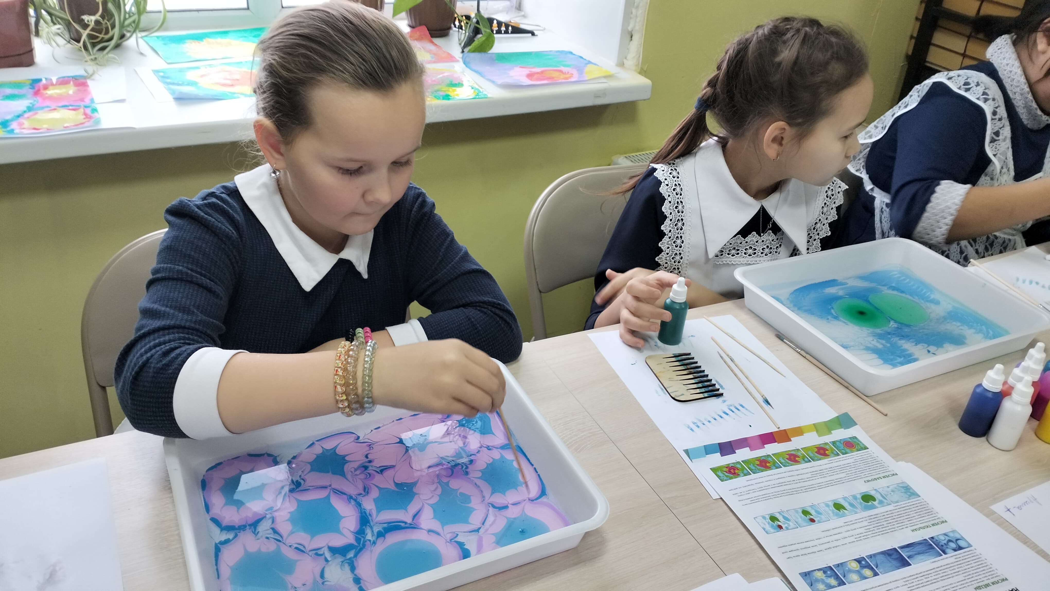 В ходе мероприятия, который провела Елена Валерьевна, все желающие смогли познакомиться с древним искусством рисования на воде и самостоятельно создать свои уникальные произведения. Эта техника, являясь настоящим творческим волшебством, позволяет создавать невероятные абстрактные узоры и рисунки, которые отражают индивидуальность каждого ребенка. Частица увлекательного процесса также состояла в том, что участники узнали историю возникновения эбру, его значение в разных культурах и смогли поэкспериментировать с цветами и формами.